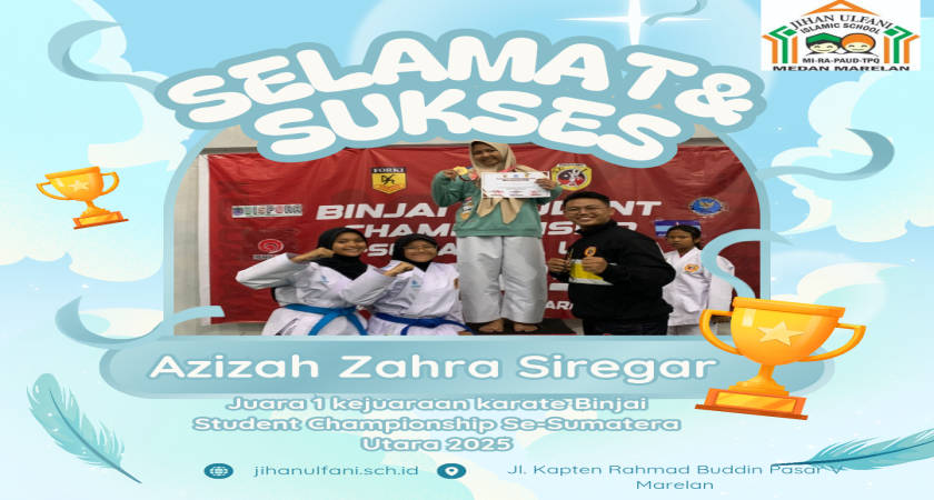 Alhamdulillah, Masha Allah tabarakallah ananda Azizah Zahra Siregar menjadi juara satu dalam kejuaraan Karate Binjai Student Championship se-Sumatera Utara 2025